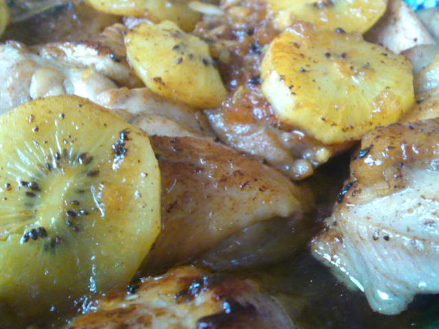 こないだ作った焼いた肉とキウイ