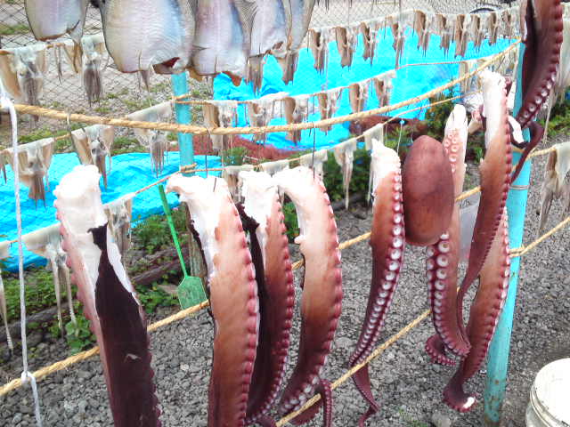 船乗ってかもめにエサやり海底を覗き海水の透明度に感動しタコを食べました。