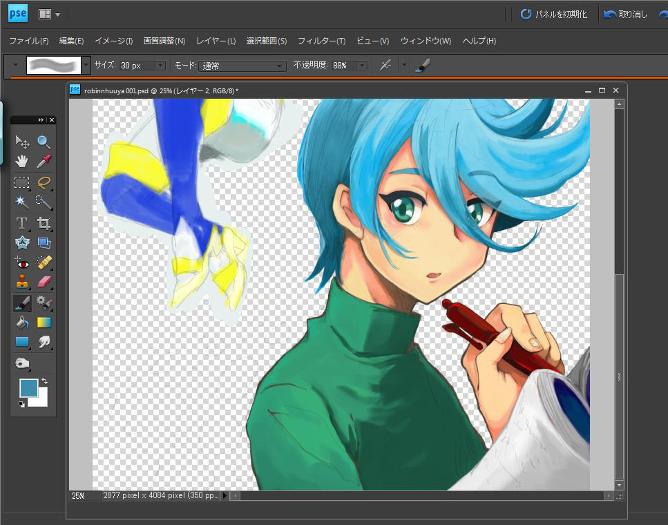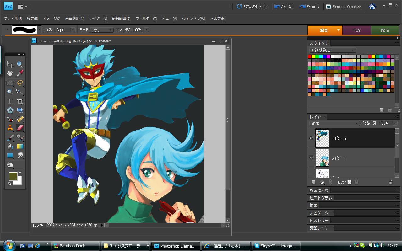 ④、ロビンの色と線の整えが同時に行われていく。